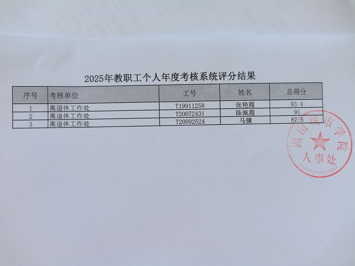 2025年教职工个人年度考核系统评分结果公示